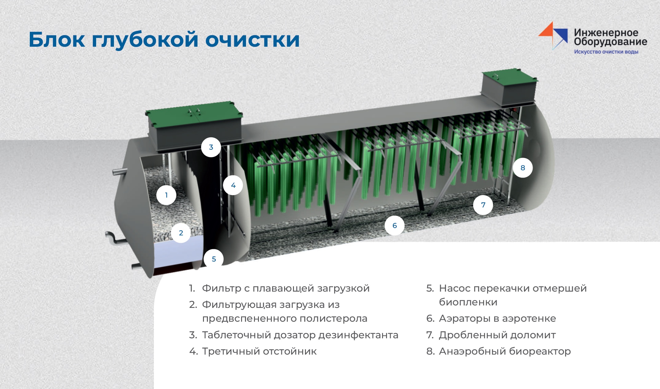 - ГЛУБОКАЯ многоступенчатая БИОЛОГИЧЕСКАЯ ОЧИСТКА с использованием иммобилизующей загрузки.